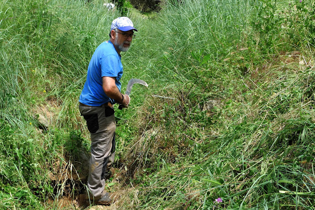 Per facilitar la circulació de l’aigua de la font hem fet una séquia per la font i una altra per l’aigua del torrent per evitar que les torrentades suaus no colguin la séquia de la font.